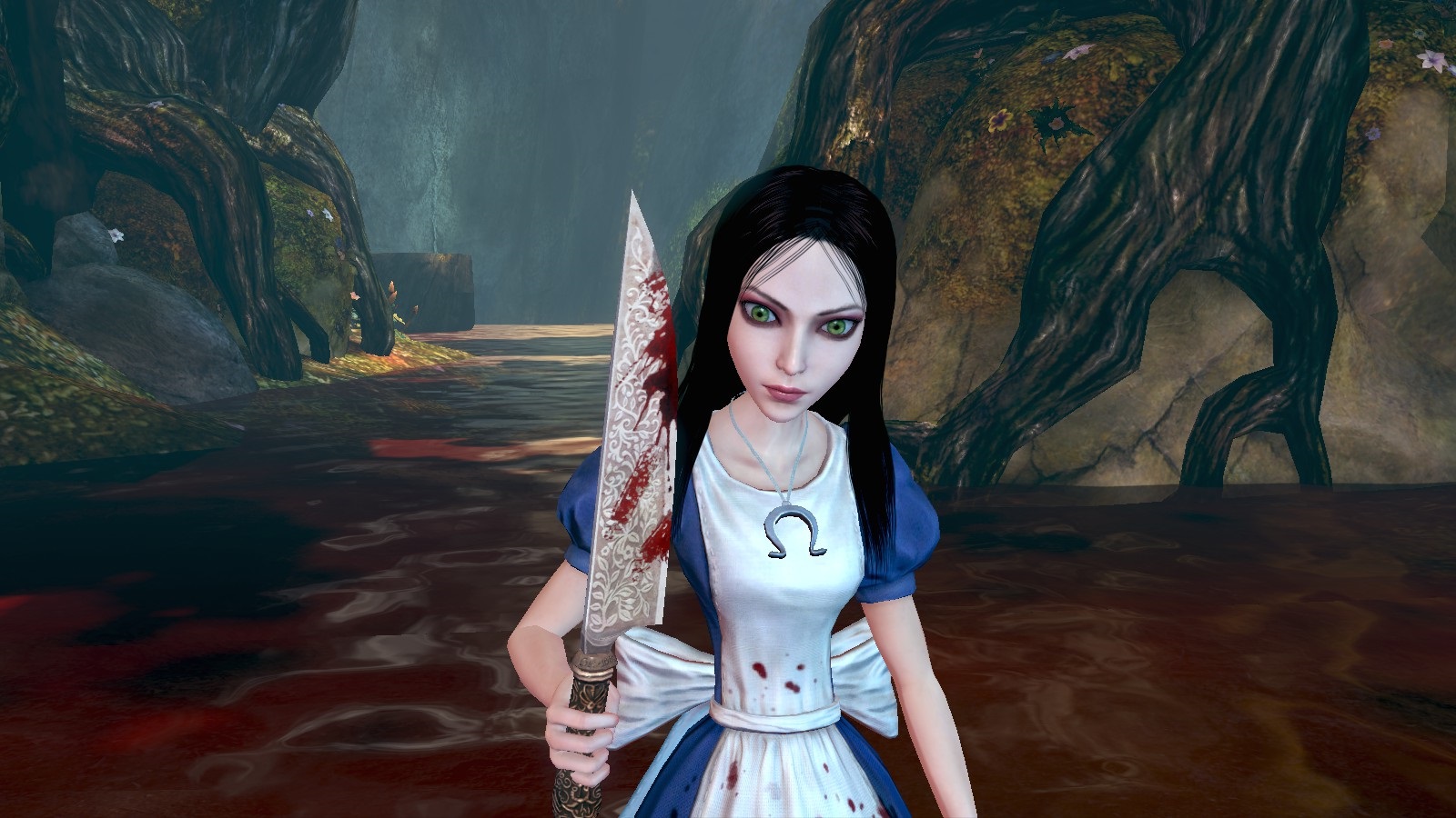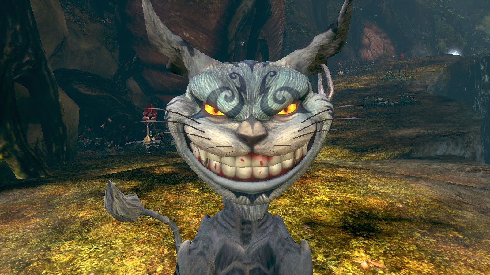 I remember the moment I first really fell in love with this game. I was still in the house where Alice begins. I’ve never managed to get a screenshot that does it justice, but as I stood by a window I could see dust motes in a beam of sunlight and thought, “Omg. This is gorgeous.” Considering that’s while the game is still in the regular world and almost in black and white, that’s pretty impressive. This attention to detail in the surroundings continues throughout the game. I wanted to explore every corner not just for collectibles, but to see what surprises were hiding in the corners.