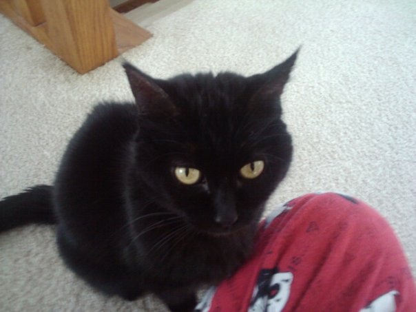• My first cat, that I barely remember, was a black cat I named “Yumma-Yumma” after part of a cereal commercial. We later had a gray cat named Flintstones who, unbeknownst to us, was pregnant when we got her. One of her kittens lived, a long-haired black cat who was technically named Sasquatch, but we called him Baby Kitty his whole life. 🙂