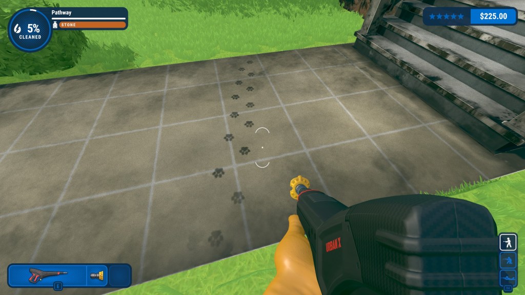 Turns out if I put on a show or audiobook, how I feel about it is just fine. PowerWash Simulator almost feels like virtual coloring to me, just a nice mellow game combined with the little dopamine pings for completing sections of a job. I like that there’s a keybind to highlight dirt so I’m rarely stuck wondering what exactly I’m missing to 100% an area – same with having a list of the level split into different parts (ie: windows, doors, walls, tires, etc.) that I can easily pull up to check my progress.