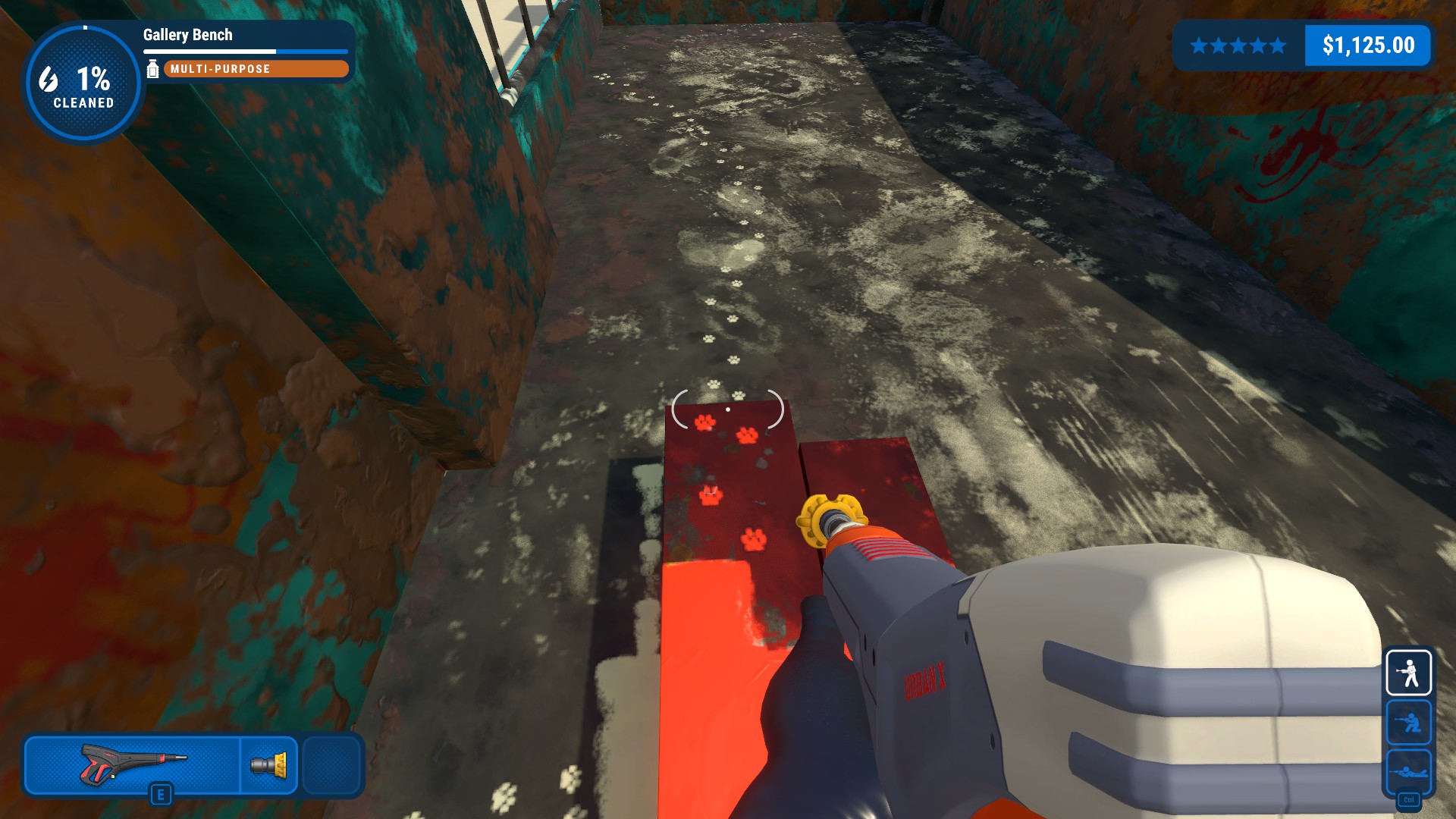 The movement and controls feel nice and smooth. Jumping isn’t always incredibly exact, but it doesn’t need to be with no fall damage. The levels are varied with some very nice backgrounds, and the sound of the power washer itself is strangely soothing.