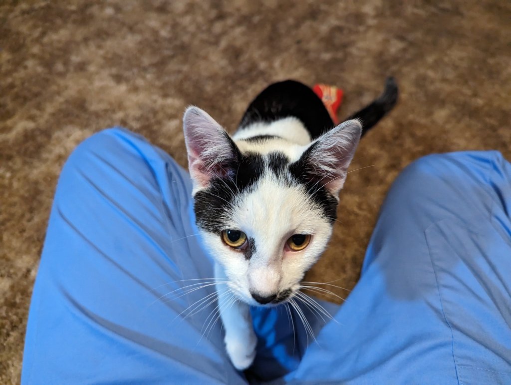 Whatever happens, Charlie is a sweet thing if also a bit of a disaster-cat. (He still has Big Kitten Energy, lol.) I’m glad we’re in a place to take care of him at the moment, and we don’t have to just release him and hope for the best. I am hugely in favor of humanely run TNR programs and of letting community cats stay where they are happiest…but Charlie has definitely decided the inside life is for him.